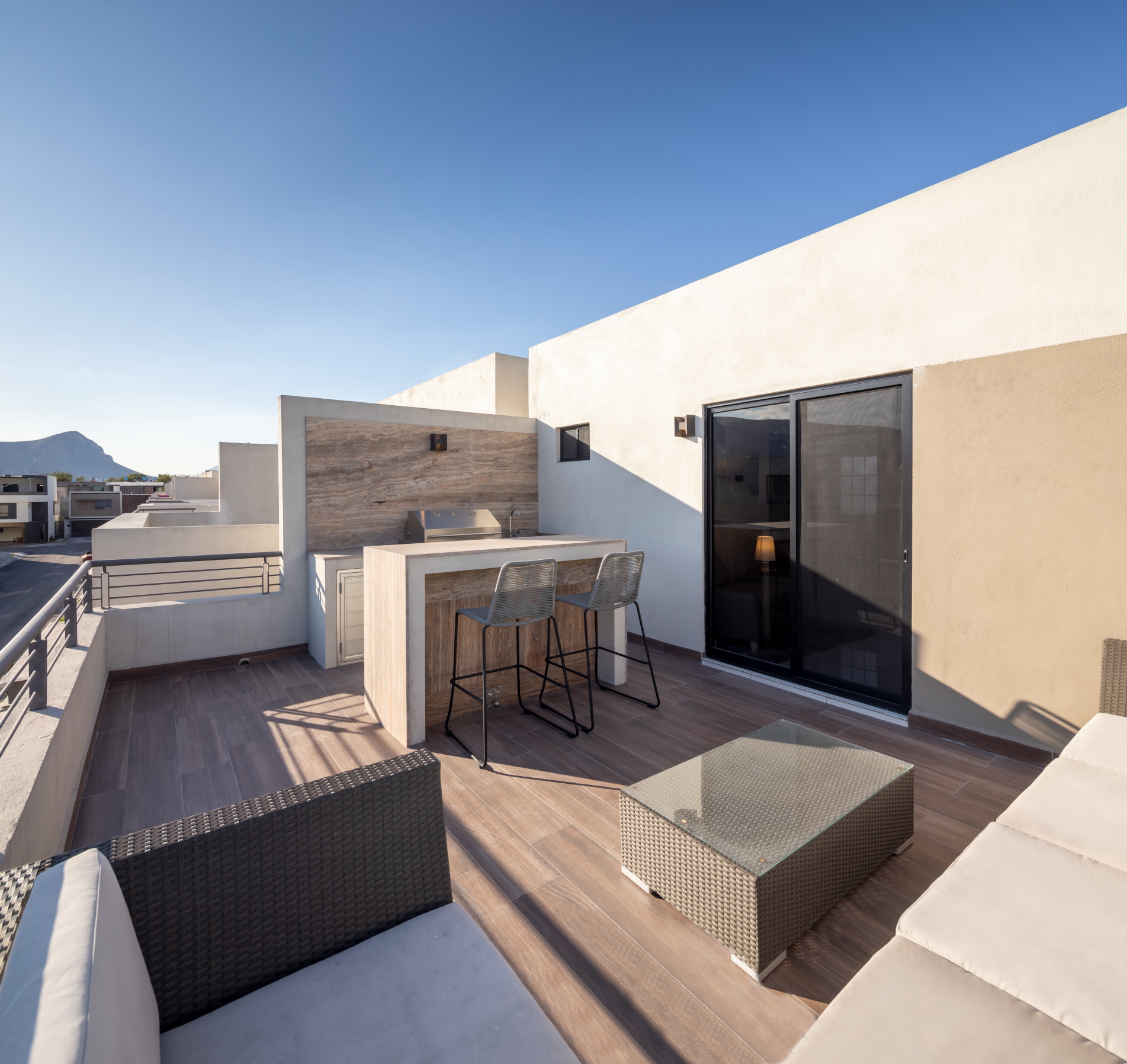 Vive en una Casa Totalmente Amueblada, equipada con Muebles de calidad. Amplia estancia en tercer nivel y terraza para tus convivios familiares. Vive en un desarrollo con Acceso Controlado y amenidades como Juegos Infantiles, Casa Club con Alberca, Áreas Verdes y Zona Fitness.